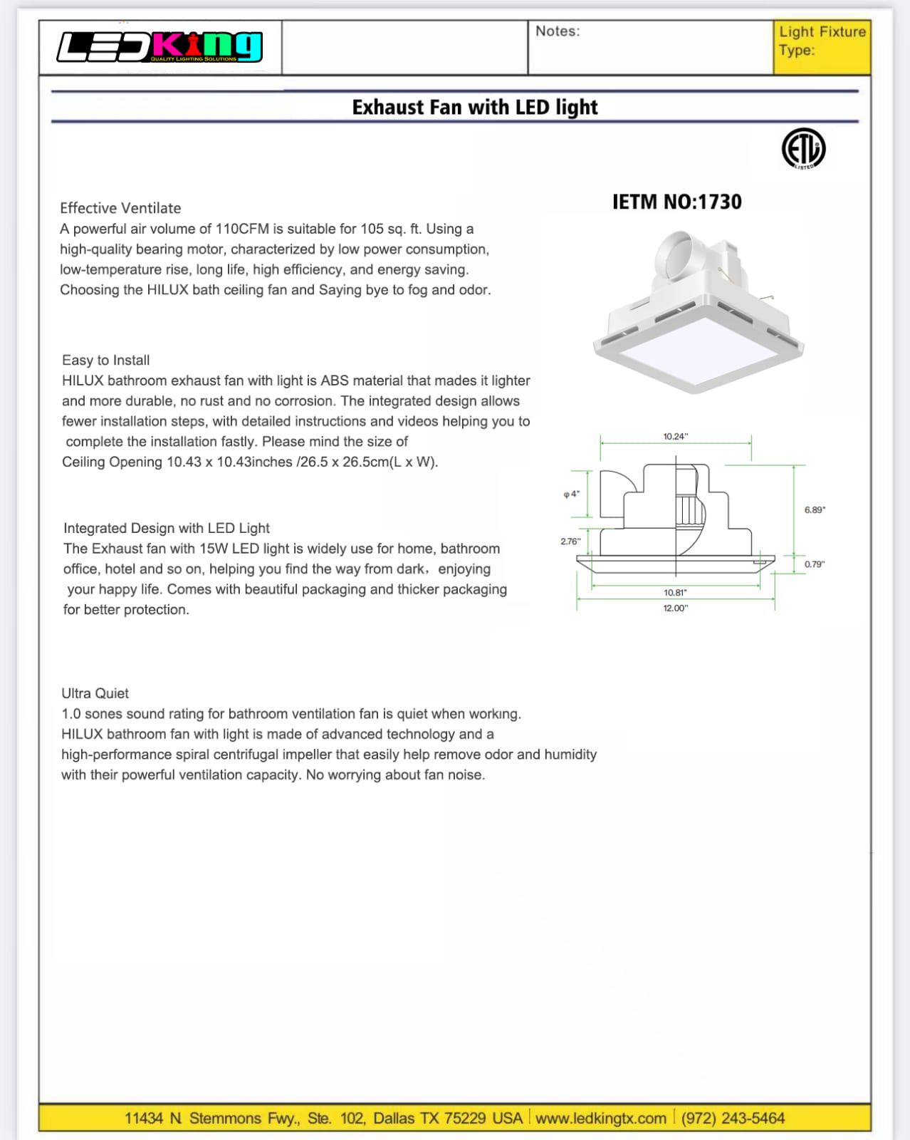 - Equipped with a high-performance motor, the exhaust fan provides strong and efficient air movement to remove humidity, odors, and excess moisture, helping to prevent mold and mildew growth.